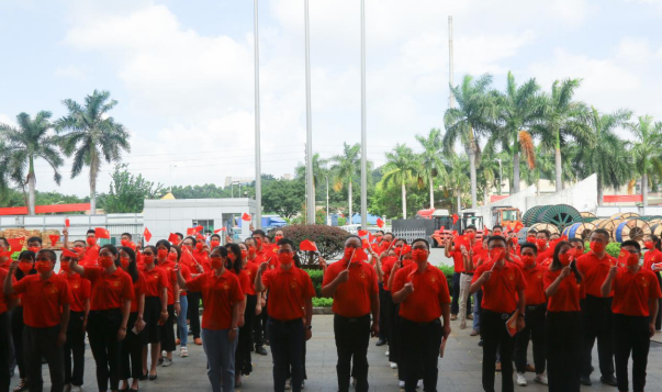 盛夏七月,热情似火!d88尊龙z6公司已是党旗飘扬,处处洋溢着喜庆祥和的气氛。当日上午,身穿“中国红”T恤的党员等参会人员有序入场,列队数字“100”庆祝图案,表达对中国共产党的无限热爱。随着主持人一声令下,伴随着激昂雄壮的国歌声,护旗手奋力将鲜艳的五星红旗抛向天空,国旗迎着清晨第一缕阳光冉冉升起,全体人员庄重注视国旗,高唱国歌,脸上写满了骄傲与自豪。
